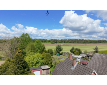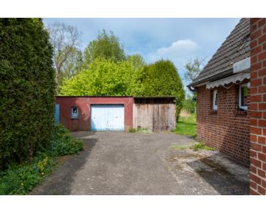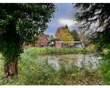 Das 1.234 m² große Grundstück mit Altbestand (versetzt in 1936/37 errichtetes Rotklinker-Satteldachhaus) und Nebengebäuden (Garage/Schuppen) bietet im hinteren Bereich einen herrlich naturbelassenen Teich, über den hinweg sich ein traumhafter, unverbaubarer Blick übers Landschaftschutzgebiet eröffnet.