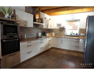 Die große Küche mit fließendem Übergang in den weiten Wohn- und Essbereich schafft ein freundliches Ambiente, ideal für gemeinsame Stunden mit Familie und Freunden.