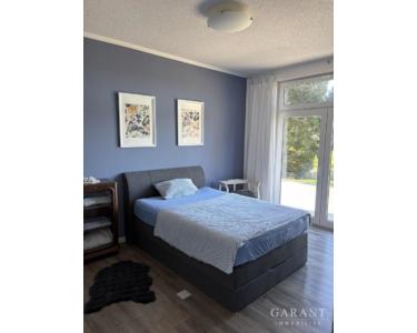 Ebenfalls zum Wasser offen ist das Kinderzimmer (Büro) und das Schlafzimmer, welches ein angegliedertes Ankleidezimmer hat. Ein großzügiges Bad mit Wanne, Walk-In-Dusche und WC runden das Objekt ab.