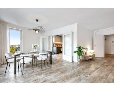 Auf rund 170 m² Wohnfläche erwarten Sie fünf lichtdurchflutete Zimmer, zwei wunderschöne Dachterrassen mit Sonne von morgens bis abends, zwei top-sanierte Bäder, eine hochwertig ausgestattete Küche, die das Herz jedes Hobbykochs höherschlagen lässt, sowie die besonders gute Schallisolierung zu den Nachbarn und zur Straße durch die rückwärtige Lage.