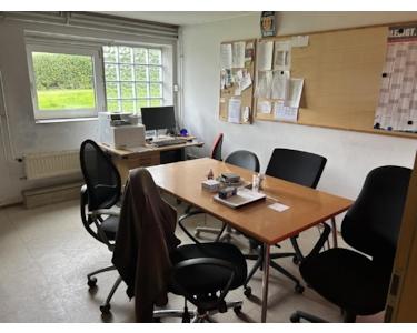 Im Erdgeschoss stehen ca. 184 m² Bürofläche verteilt auf acht Räume zur Verfügung, die flexibel genutzt werden können. Das Kellergeschoss beherbergt eine großzügige Lagerfläche mit Sektionaltor, dazu kommen ein Sozialraum, ein Waschraum, sowie sanitäre Anlagen.
