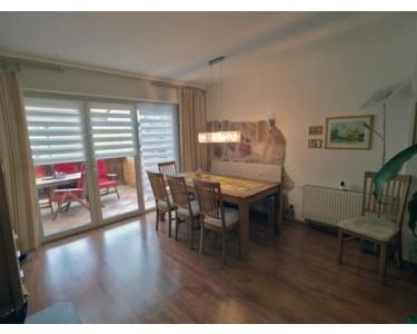 Das erste Obergeschoss in Verbindung mit dem Dachgeschoss wurde zu einer attraktiven Maisonette-Wohnung umgebaut. Auf der unteren Ebene befinden sich die praktisch geschnittene, voll ausgestattete Küche, ein separates Esszimmer mit Zugang zum großen Balkon, ein gemütliches Wohnzimmer, ein Schlafzimmer sowie ein Tageslicht-Duschbad.