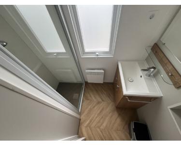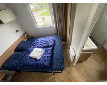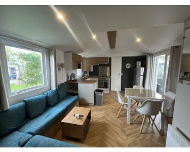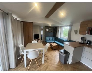 IRM Aventura 3 Z45 Im Inneren betreten Sie einen geräumigen Wohnbereich mit direktem Zugang zur sonnigen Terrasse – perfekt für lange Sommerabende oder eine Tasse Kaffee in der Morgensonne. Das gemütliche Wohnzimmer ist mit einem bequemen L-förmigen Sofa ausgestattet. Geräumige, funktionale U-förmige Küche, komplett mit Edelstahl-Gasherd und integriertem Geschirrspüler. Alles, was Sie für einen entspannten Aufenthalt benötigen, ist vorhanden. Die Master-Suite bietet Komfort und Privatsphäre und verfügt über ein eigenes Bad und WC. Darüber hinaus gibt es mehr als genug Stauraum, darunter einen Einbauschrank im Eingangsbereich – praktisch für Jacken, Schuhe oder andere Urlaubssachen.
