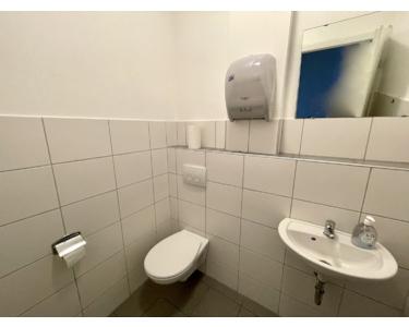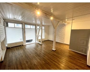 Im Erdgeschoss befinden sich zwei helle Gewerbeeinheiten mit jeweils etwa 60 m² Fläche. Großzügige Fensterfronten sorgen für eine hervorragende Sichtbarkeit und machen die Räume ideal für Büro-, Praxis- oder Dienstleistungszwecke. Über den Innenhof ist zudem die ca. 70 m² große Werkstatt zugänglich.