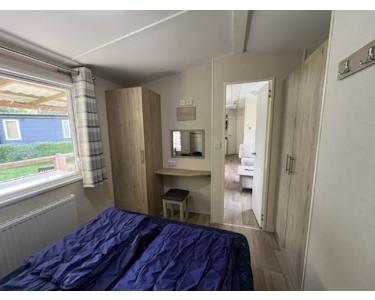 Genießen Sie Ruhe, Platz und Komfort in diesem wunderschön gelegenen Ferienchalet auf einem großzügigen Grundstück, umgeben von viel Grün. Im Inneren betreten Sie einen geräumigen Wohnbereich mit direktem Zugang zur sonnigen Terrasse, die sich perfekt für lange Sommerabende oder eine Tasse Kaffee in der Morgensonne eignet. Das Wohnzimmer verfügt über ein bequemes U-förmiges Sofa. Geräumige, funktionale Küche, komplett mit Backofen und Geschirrspüler. Alles, was Sie für einen entspannten Aufenthalt benötigen, ist vorhanden. Die Master-Suite bietet Komfort und Privatsphäre und verfügt über ein eigenes Bad und WC.