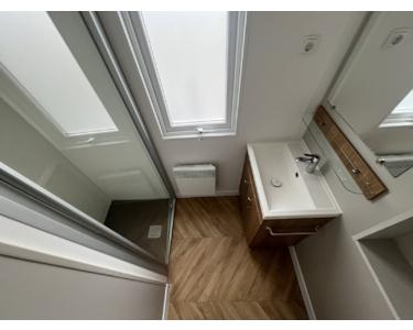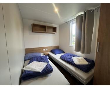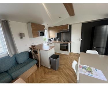 IRM Aventura 3 D03 Genießen Sie Ruhe, Platz und Komfort in diesem wunderschön gelegenen Ferienchalet auf einem großzügigen Grundstück, umgeben von viel Grün. Im Inneren betreten Sie einen geräumigen Wohnbereich mit direktem Zugang zur sonnigen Terrasse – perfekt für lange Sommerabende oder eine Tasse Kaffee in der Morgensonne. Das gemütliche Wohnzimmer ist mit einem bequemen L-förmigen Sofa ausgestattet. Geräumige, funktionale U-förmige Küche, komplett mit Edelstahl-Gasherd und integriertem Geschirrspüler. Alles, was Sie für einen entspannten Aufenthalt benötigen, ist vorhanden. Die Master-Suite bietet Komfort und Privatsphäre und verfügt über ein eigenes Bad und WC. Darüber hinaus gibt es mehr als genug Stauraum, darunter einen Einbauschrank im Eingangsbereich – praktisch für Jacken, Schuhe oder andere Urlaubssachen. Merkmale auf einen Blick: Großer Wohnbereich mit Terrassentüren Wohnzimmer mit L-förmiger Couch und Klappbett Voll ausgestattete U-förmige Küche mit Gasherd und Geschirrspüler Hauptschlafzimmer mit eigenem Bad und WC Viel cleverer Stauraum Auf einem großzügigen Grundstück mit optimaler Privatsphäre gelegen