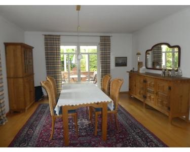 Sie bewohnen im Erdgeschoss ein Wohnzimmer, ein Esszimmer, eine Küche mit Einbauküche, ein Gäste-Zimmer (Büro), ein Bad, einen Hauswirtschaftsraum und eine Diele.