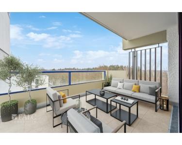 Diese charmante 116,94 m² große Wohnung befindet sich im 6. Obergeschoss der Terrassen-Wohnanlage in der Waldkolonie Putzbrunn. Die durchdachte Architektur schafft eine harmonische Verbindung von Licht, Raum und Natur.