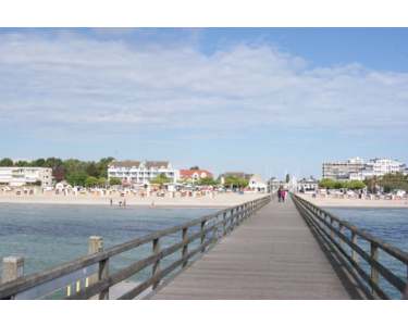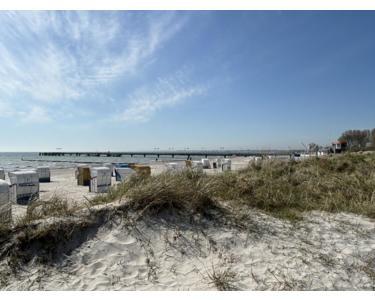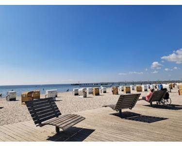 Promenade und Sandstrand mit Strandkörben, Gastronomie, Seebrücke in ca. 100m Entfernung.
