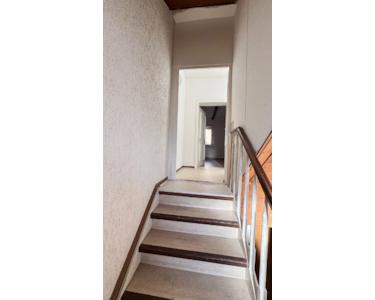 Über einen straßenseitig gelegenen Hauseingang gelangen Sie in das Treppenhaus mit Holztreppe ins Ober- und Dachgeschoss.