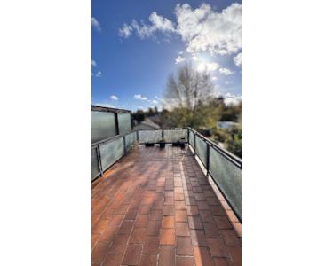 - große Dachterrasse (ca. 20 qm) gefliest mit braunen Spaltplatten und Markise