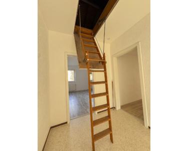 Über eine Ausziehtreppe erreicht man den gedämmten Spitzboden, der als großzügige Abstellfläche genutzt werden kann.