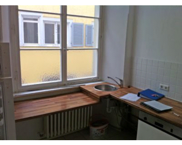In der Wohnung werden momentan Reparaturen an einer Außenwand durchgeführt, da hier Nassstellen waren, die beseitigt werden.