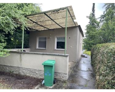 - Bestandsbebauung: zum Abriss vorgesehener Stein-Bungalow (ca. 34 m²) im mittleren Grundstücksteil, Holzschuppen im hinteren Grundstücksbereich