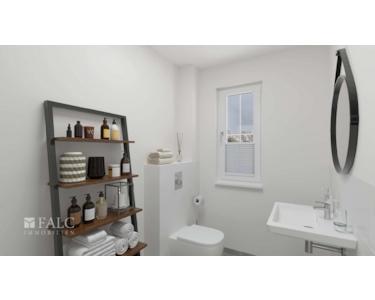 Alle im Exposé gezeigten Bilder sind visualisierte Darstellungen, das Haus wird unmöbliert verkauft. Käufer haben darüber hinaus die einmalige Gelegenheit, aktiv an der finalen Gestaltung mitzuwirken, da der Verkäufer für Wünsche und Anpassungen offen ist.