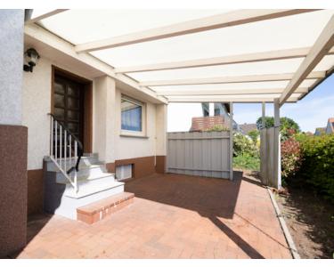 Der einladende Flur führt Sie in den großzügigen Wohn- und Essbereich, der viel Platz für das tägliche Familienleben bietet. Direkt angrenzend befindet sich ein zusätzliches Zimmer, das flexibel als Gäste-, Arbeits- oder Schlafzimmer genutzt werden kann. Die separate Küche bietet Zugang zu einem praktischen Abstellraum, der zum Gartenbereich führt. Das Erdgeschoss verfügt über ein Tageslichtbad mit Dusche. Ergänzt wird das Erdgeschoss durch den Zugang zur überdachten Terrasse, die zusätzlichen Wohnkomfort im Außenbereich bietet.