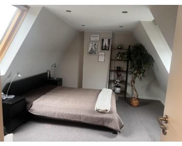 Das Dachgeschoss wurde wohnlich ausgebaut und bietet zusätzlichen Raum, der derzeit als Garderobe und Aufenthaltsbereich genutzt wird.