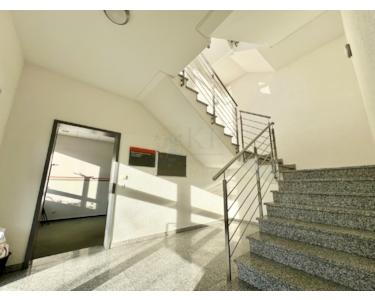 Das 2 1/2 geschossige und sehr gepflegte Bürogebäude wurde aus massivem Porotonstein erreichtet und hat ein bogenförmiges Kalzip-Dach. Grosszügige und teils bodentiefe Fenster, mit Aussenraffstoren zur Verschattung, sorgen nicht nur für helle freundliche Büroräume sondern sind extrem energieeffizient.