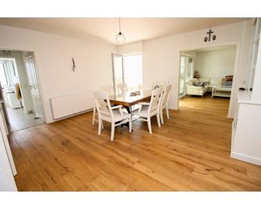 Beim Betreten des Hauses gelangen Sie direkt in das zentral gelegene Esszimmer, das als offener Treffpunkt den Mittelpunkt des Hauses bildet. Von hier aus erschließen sich alle weiteren Räume und schaffen ein durchdachtes Wohnkonzept mit kurzen Wegen und einem angenehmen Raumfluss.