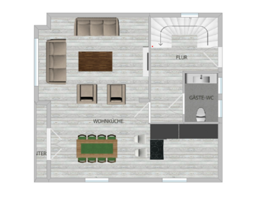Im Erdgeschoss linksseitig befindet sich ein Gäste-Wc.