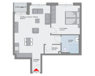 Im Obergeschoss eines gepflegten Mehrfamilienhauses erwartet Sie Wohnung 07 – eine attraktive 2-Zimmer-Wohnung mit durchdachtem Grundriss und gemütlicher Loggia.