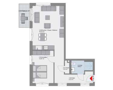 Die Wohnung überzeugt durch ihre Lage im Obergeschoss: Hier genießen Sie mehr Licht, mehr Privatsphäre und einen schönen Ausblick vom eigenen Balkon. Der Wohnbereich ist großzügig geschnitten und lädt zum Entspannen ein. Der Kochbereich bietet Platz für Ihre kulinarischen Ideen, während das Schlafzimmer ein ruhiger Rückzugsort bleibt. Das Badezimmer ist modern ausgestattet und rundet das Gesamtbild ab.