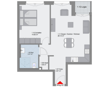 Diese charmante 2-Zimmer-Wohnung im Erdgeschoss bietet ein behagliches Zuhause mit durchdachter Raumaufteilung und einer geschützten Loggia, die zum Verweilen einlädt. Ideal für Singles, Paare oder als komfortabler Rückzugsort mitten im Leben.
