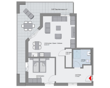 Im obersten Geschoss des Hauses erwartet Sie ein echtes Highlight: Wohnung 09 vereint stilvolles Design, durchdachte Raumaufteilung und eine beeindruckende Dachterrasse – perfekt für alle, die das Besondere suchen.