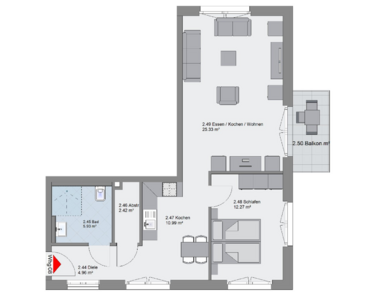 Die Wohnung überzeugt durch ihre klare Raumaufteilung und ein angenehmes Wohngefühl. Der Balkon lädt zum Verweilen ein – ob beim Frühstück in der Sonne oder beim Glas Wein am Abend