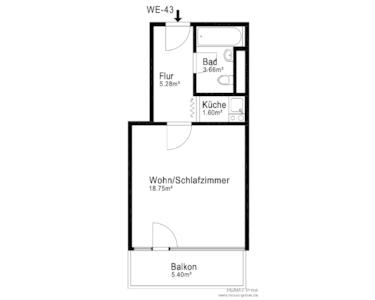 Bitte beachten Sie: Der im Exposé dargestellte Grundriss entspricht dem ursprünglichen Aufteilungsplan. In der aktuellen Nutzung wurde die Wand zur Kochnische entfernt, sodass ein offener Wohn-, Ess- und Küchenbereich entstanden ist.