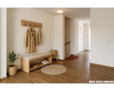 Ein Gäste-WC, ein praktischer Abstellraum sowie eine Dachterrasse, die zum Verweilen und Entspannen einlädt, runden das Erdgeschoss ab.