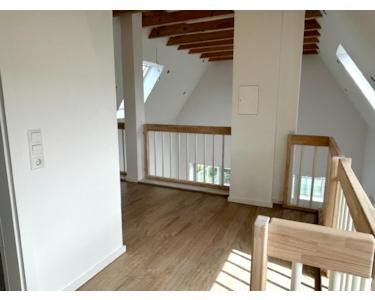 Die ausgebaute Empore bietet eine Galerie, die als gemütlicher Lese- oder Arbeitsbereich genutzt werden kann. Hier befindet sich außerdem ein drittes Schlafzimmer sowie ein weiteres Badezimmer.