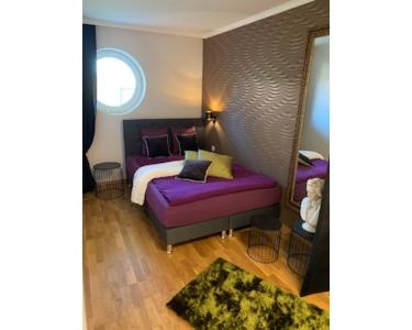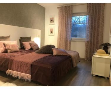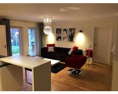 Im Unterschoss befindet sich die ca. 55 m² große Einliegerwohnung mit separatem Eingang, komplett möbliert, und einer abgeschlossenen überdachten Terrasse mit Zugang zum Garten. Ein ideales Zuhause für Angehörige, zur Vermietung oder als Ferienwohnung. Auch hier überzeugt die Ausstattung mit eigenem Bad, Schlafzimmer, Einbauküche, Terasse und durchdachtem Raumkonzept.