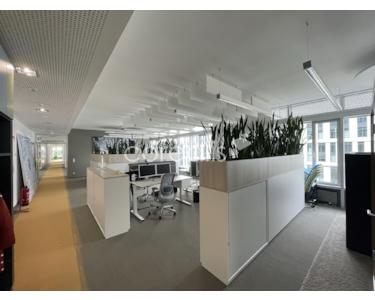 Ergänzend zur hochwertigen Ausstattung stehen den Mietern ein besetzter Empfang sowie ein Bistro bzw. eine Kantine zur Verfügung, die eine komfortable Versorgung im Arbeitsalltag ermöglichen. Konferenzräume können individuell und flexibel angemietet werden, um Besprechungen, Workshops oder Präsentationen professionell umzusetzen. Darüber hinaus profitieren Nutzer von verschiedenen Shared Services wie einem zentralen Postservice, Reinigungsdiensten und weiteren unterstützenden Angeboten, die den Büroalltag effizient gestalten.