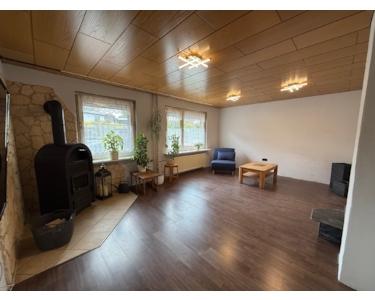 Auf zwei Etagen verteilt, bietet das voll unterkellerte Haus ca. 75 m² Wohnfläche. Über einen Anbau geht es in den Flur, von da aus in das Gäste-WC mit Tageslicht und in das geräumige Wohnzimmer, ein Kamin lädt hier zum Entspannen ein. Ebenfalls im Erdgeschoss befindet sich die Küche (inkl. Einbauküche) mit Blick in den Garten.