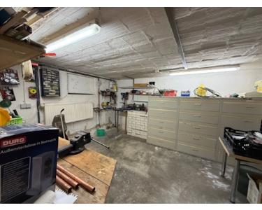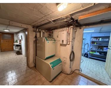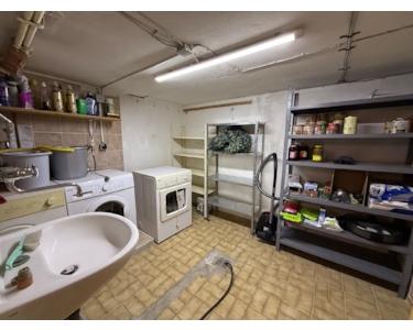 Der Keller teilt sich in drei Räume auf und hat einen separaten Zugang. Im Waschraum befindet sich ein Waschbecken und ein Podest für die Waschmaschine, dass ein bequemes Beladen ermöglicht. Ein weiterer Raum kann als Werkstatt eingerichtet werden, es gibt außerdem viel Stauraum. Auch die Gasheizung befindet sich in den Kellerräumen.