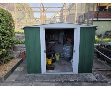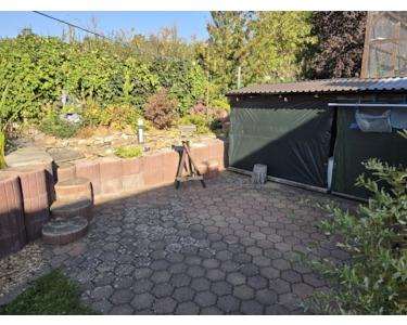Von der überdachten Terrasse aus blicken Sie direkt in den Garten. Die Teichanlage ist funktionstüchtig und kann sofort in Betrieb genommen werden. Ebenfalls im Außenbereich finden Sie ein Gerätehäuschen und zwei PKW Stellplätze vor. Weitere öffentliche Parkmöglichkeiten befinden sich vor dem Haus, entlang der Straße.