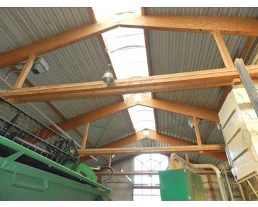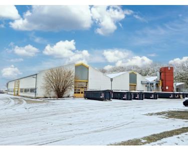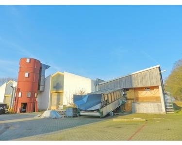 Das Hauptgebäude bietet etwa 2.675 m² Nutzfläche und setzt sich zusammen aus drei verbundenen Hallen mit einem Bürobereich sowie einem ehemaligen Kaltlager. Die bebaute/befestigte Fläche beträgt ca. 13 000 m². Neben den drei Hallen schließt sich die Trocknungsanlage an.