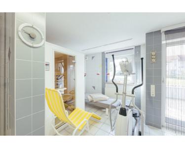 Ein besonderes Highlight des Hauses ist der exklusive Wellnessbereich, ausgestattet mit einer Sauna, einer Infrarotkabine, Sportgeräten und einer Dusche.