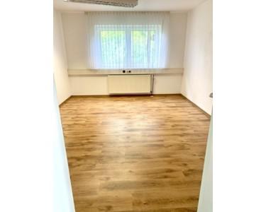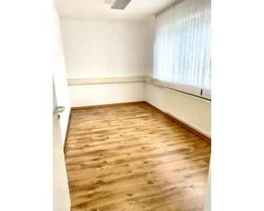 Der Eingangs- und Flurbereich ist gefliest, während die Büroräume mit hochwertigem dunkelgrauen Teppichboden ausgestattet sind. Zwei der Räume verfügen über hellen Laminatboden in Eiche-Optik, was für eine freundliche, moderne Atmosphäre sorgt.