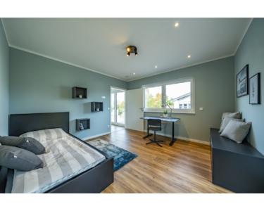 Erleben Sie luxuriöse Ausstattung auf höchstem Niveau. Die Stadtvilla bietet drei geräumige Schlafzimmer und zwei Bäder mit hochwertigen Sanitäreinrichtungen, die sowohl Dusche als auch Badewanne umfassen. Ein zusätzliches Gäste-WC sorgt für weiteren Komfort. Die Bodenbeläge aus Fliesen bieten nicht nur eine elegante Optik, sondern sind auch pflegeleicht und langlebig. Alternativ können Sie die Bodenbeläge nach Wunsch gestalten, um Ihren persönlichen Stil zu unterstreichen. Das Haus wird von einer effizienten Wärmepumpe beheizt, die umweltfreundlich ist und Energiekosten spart. Mit KFW40-Standard erfüllen wir höchste energetische Ansprüche.
