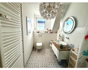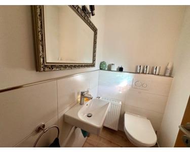 Zu dieser Wohnung gehört noch ein ebenfalls renoviertes, hübsches Gäste-WC mit kleinem Flur und Abstellmöglichkeit.