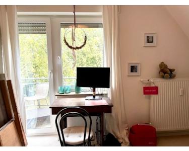 Die Wohnfläche der Erdgeschoss-Wohnung beträgt 98 m² zuzügl. Terrasse. Die Aufteilung und Ausstattung ergibt sich wie folgt: Eingangsbereich und Diele, ein Büro bzw. Kinderzimmer, ein geräumiges Schlafzimmer mit Zugang zum hübschen Badezimmer mit ebenerdiger Glasdusche, Handtuchwärmer, Waschtisch und WC, eine gut geschnittene Küche (die Einbauküche gehört der Mieterin) sowie ein großzügiges und helles Wohn- Esszimmer mit ebenerdigen Fensterflächen und Ausgang auf die Terrasse und in den wunderschönen Garten.