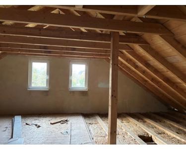 Der Dachstuhl und Dacheindeckung, Elektroinstallation, Fenster und Zuordnung eines modernen Grundriss.
