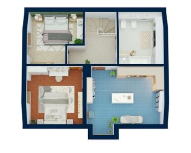Im Obergeschoss befinden sich drei Schlafzimmer, die individuell gestaltet werden können. Das Hauptschlafzimmer bietet viel Platz und Komfort. Ein weiteres Zimmer eignet sich hervorragend als Kinderzimmer oder Büro. Die Ankleide bietet zusätzlichen Stauraum und sorgt für Ordnung.