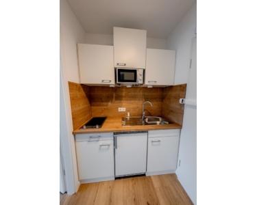 – Neue, moderne Einbauküche mit Kühlschrank, Gefrierfach, Mikrowelle, Cerankochfeld und Edelstahlspüle