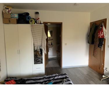 Das Wohnzimmer kann durch Entfernen einer Wand vergrößert werden.