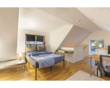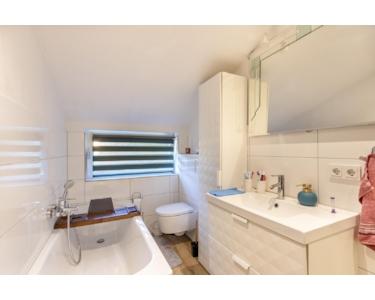 Im Dachgeschoss erwarten Sie drei helle Zimmer sowie ein großzügiges Vollbad mit Badewanne und Dusche. Die Räume werden aktuell als Schlaf- und Kinderzimmer genutzt und bieten flexible Gestaltungsmöglichkeiten – sei es als Elternsuite, Kinderparadies oder Homeoffice.