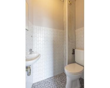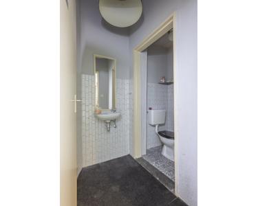 Über einen Durchgangsbereich gelangt man zum Gäste-WC mit Stand-WC und Handwaschbecken.