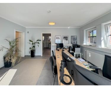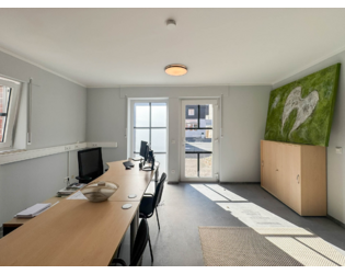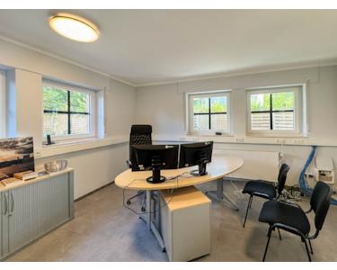 Der eigene Eingang sorgt für Komfort. Insgesamt stehen ca. 54 m² Gewerbefläche, aufgeteilt auf zwei Räume, Teeküche und WC zur Verfügung.